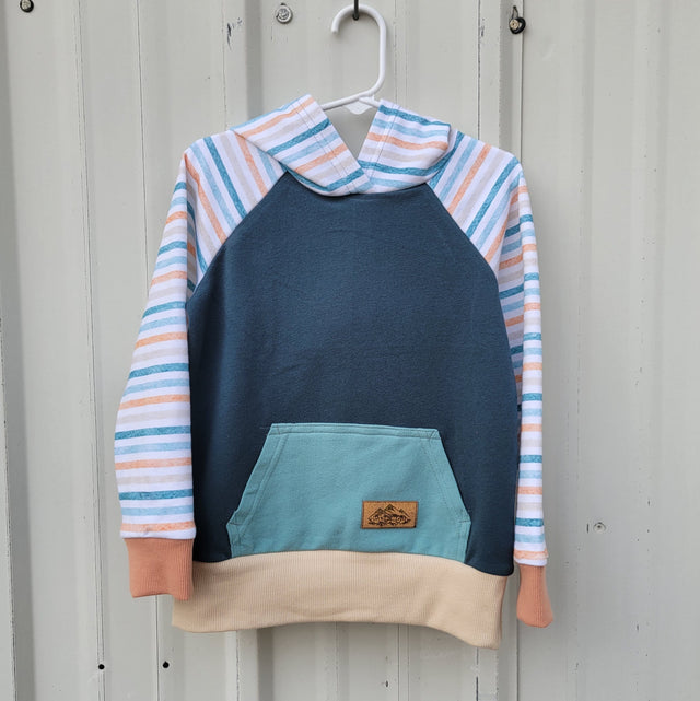 Kids Hoodie - Blue/Peach Stripe - 4 is backordered and will ship as soon as it is back in stock.