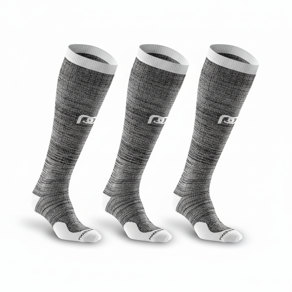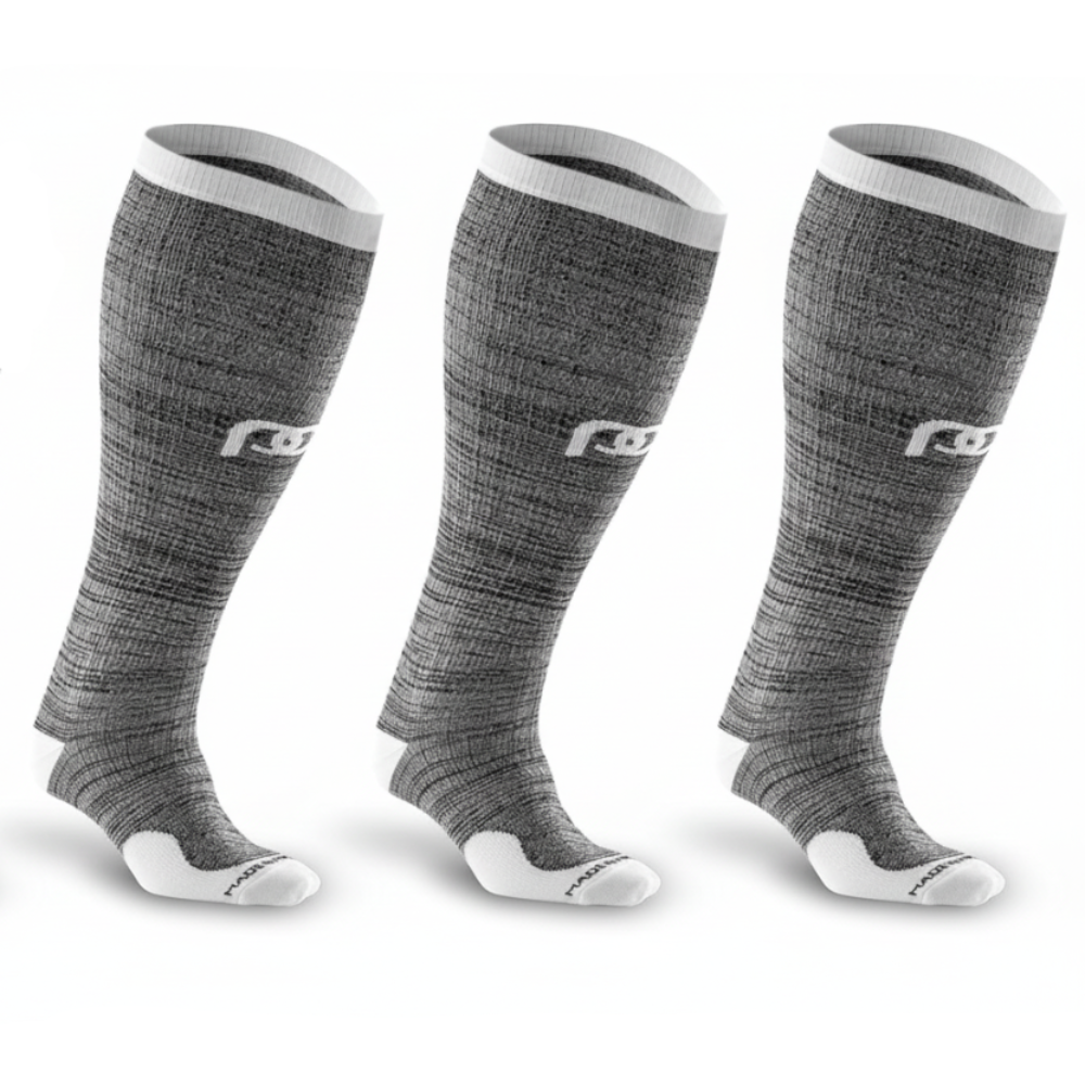 Our Marathon knee-high sock offers true graduated compression, increases blood flow, and allows you to perform at your peak, recover faster and feel better sooner. Our advanced design supports critical muscles and tendons, and our proprietary blend of materials wicks moisture for a comfortable fit that goes the distance.
