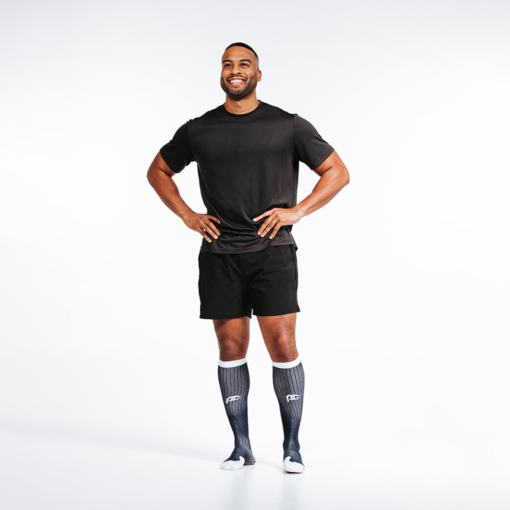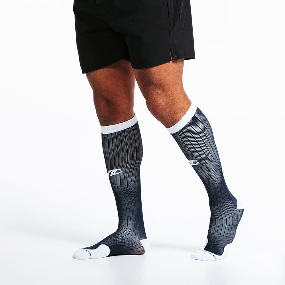 The Marathon Navy over White, offers true graduated compression, which increases blood flow and allows you to perform at your peak, recover faster and feel better sooner. Our advanced design supports critical muscles and tendons, and our proprietary blend of materials wicks moisture for a comfortable fit that goes the distance.