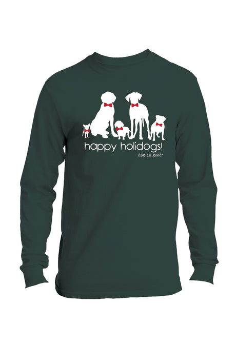 Long Sleeve T-shirt: Happy Holidogs Dark Green (Holiday)