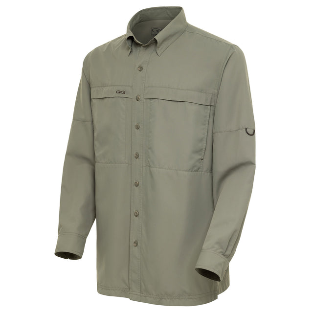 Built for those who thrive in the outdoors, the Original Shirt | Long Sleeve combines comfort and function for your adventures. Made from lightweight microfiber with UPF 50+ sun protection, it shields you from the elements while keeping you cool with mesh-lined vents at the chest and back. Quick-drying and wrinkle-resistant, this shirt is perfect for the unpredictable demands of hunting, fishing, or outdoor exploration. Hidden chest pockets and a bungee loop system add secure storage and versatility, while stain resistance ensures durability in rugged conditions. With a hidden lay-flat collar and tagless design, it offers a polished, no-fuss fit that transitions effortlessly from the field to the lodge.