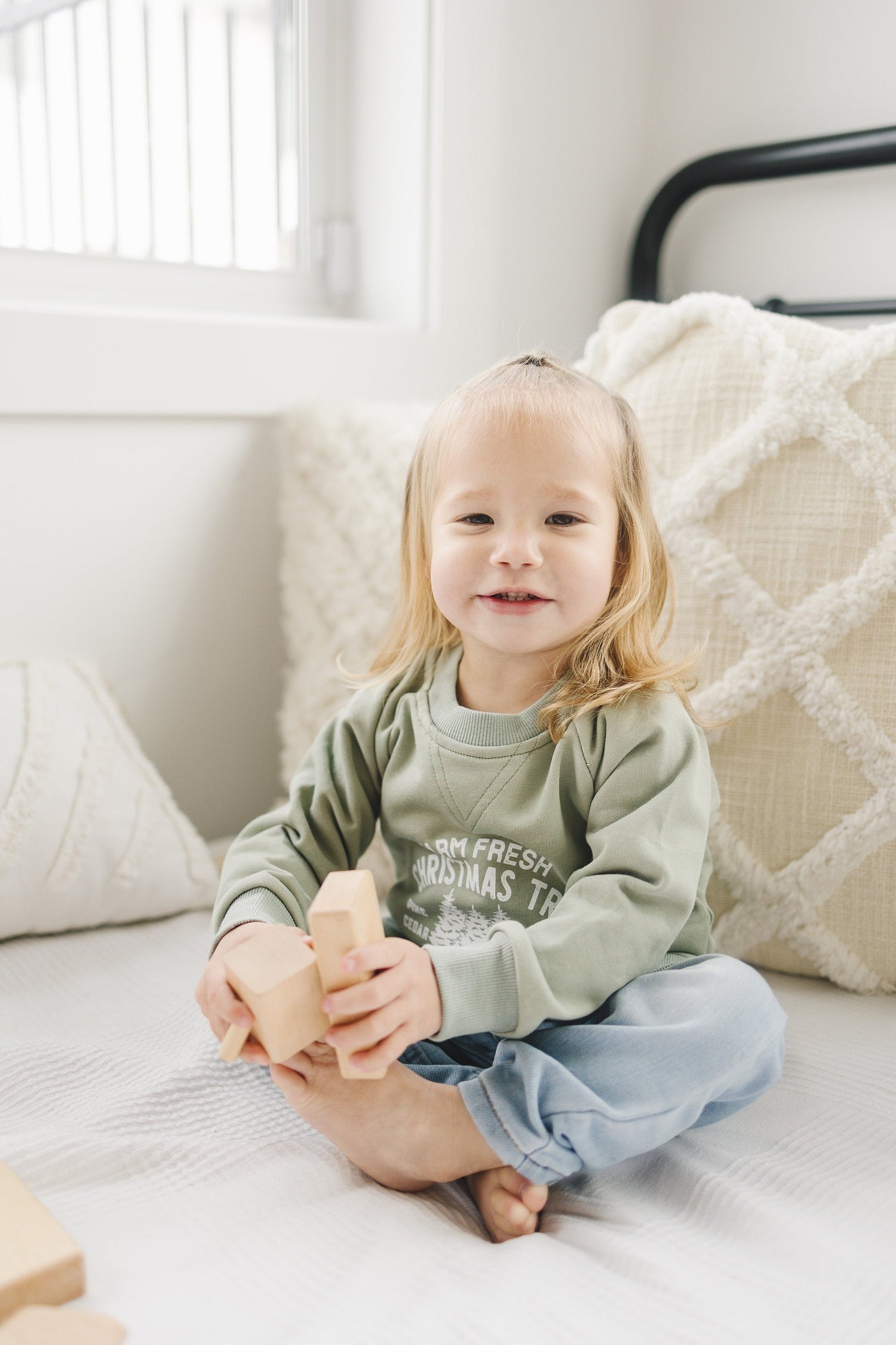 Available in sizes from 0-3 months to 4T, our Farm Fresh Christmas Trees Graphic Crewneck Sweatshirt is designed to provide a snug fit as your child grows. Let your little one embrace the holiday spirit in style and comfort with this whimsical and seasonally inspired piece.