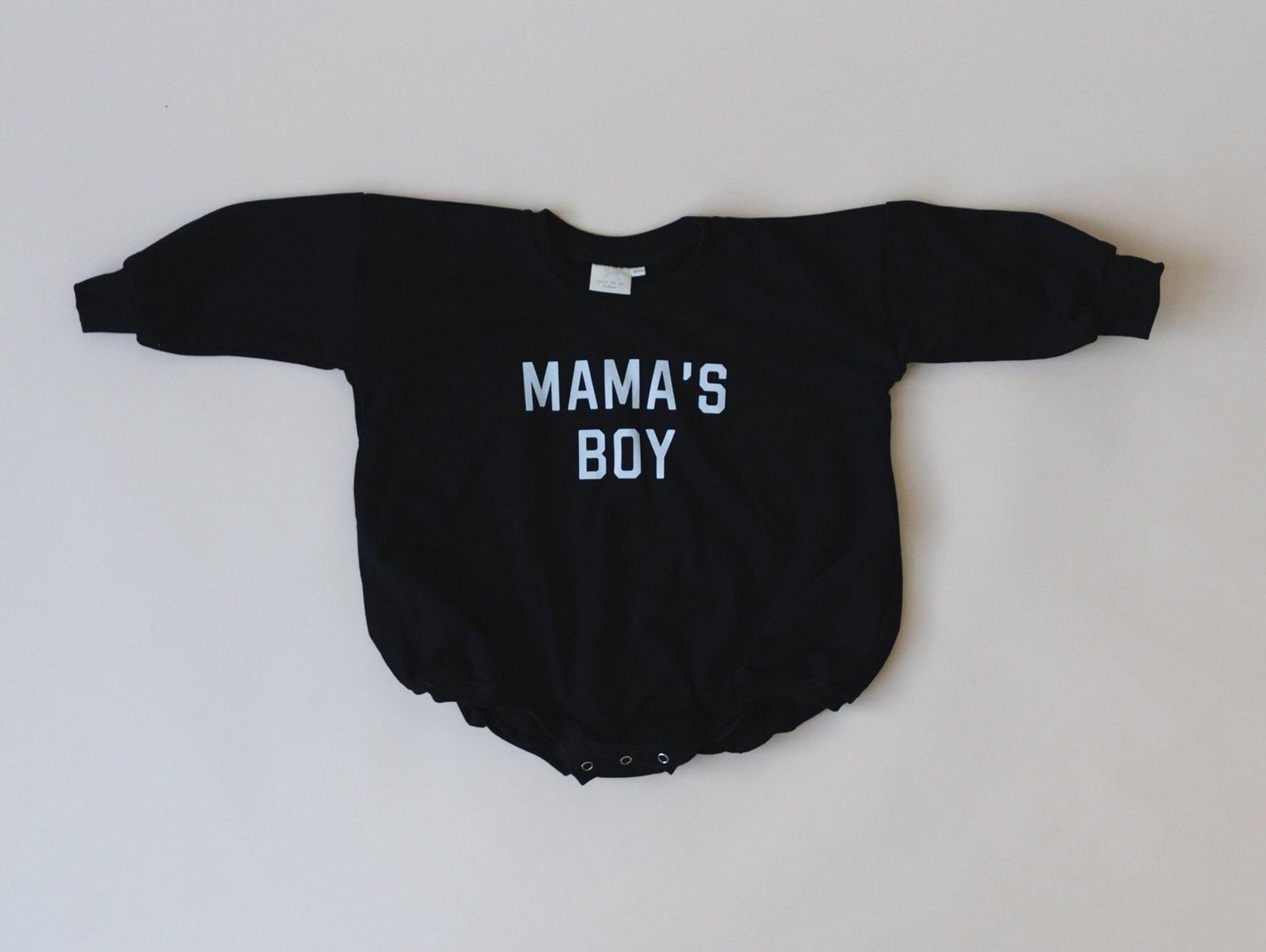 MAMA'S BOY graphic oversized sweatshirt romper with snaps at crotch. Lightweight terry material.