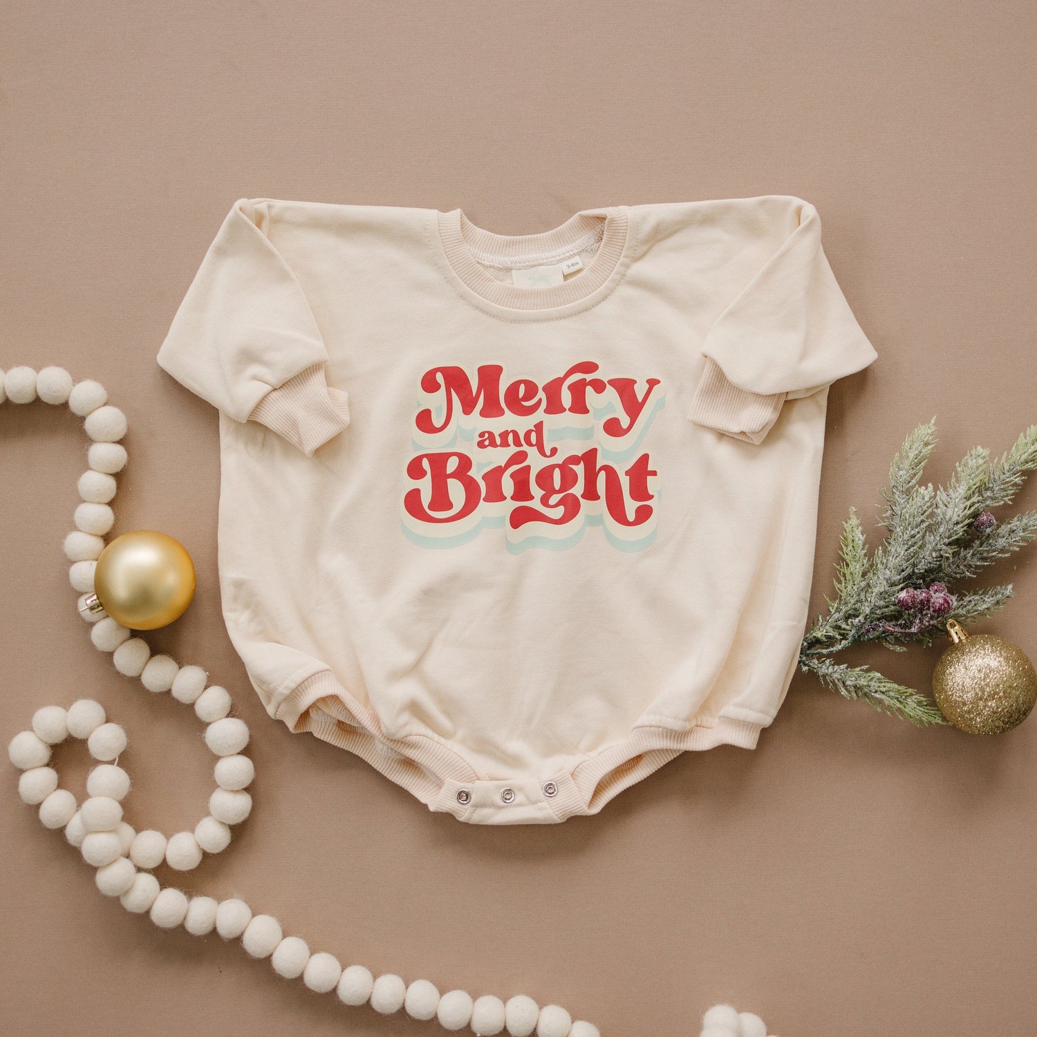 Merry and Bright Christmas Sweatshirt Romper - 0-3 months is backordered and will ship as soon as it is back in stock.