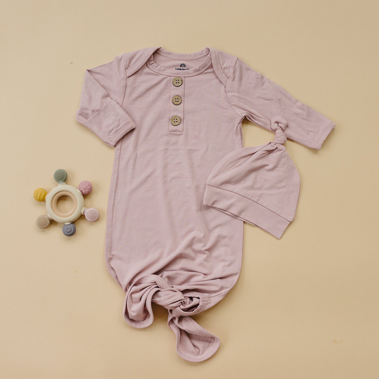 Wrap your little one in comfort and style with our Newborn Bamboo Gown & Hat Set—designed to perfectly coordinate with our Labor & Delivery Gowns. Featuring soft bamboo fabric and a gentle stretch, this gown is not only cozy but functional with a button accent and a convenient tie-bottom for quick diaper changes. Choose from three timeless colors: