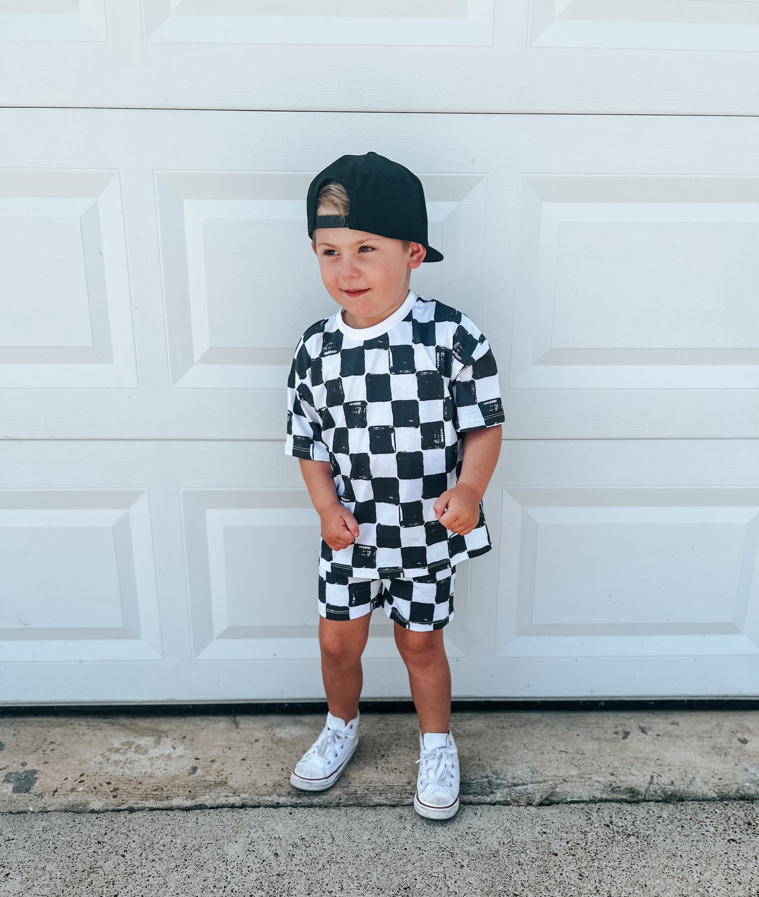 Introducing our Organic Cotton Black & White Checkered Shorts Set, a perfect blend of comfort and style for your little one. Crafted from 100% organic cotton, this set ensures a soft and cozy experience.