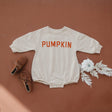 "Pumpkin" Graphic Oversized Sweatshirt Romper - Embrace autumn's charm with this cozy oversized sweatshirt romper. Featuring practical snaps at the crotch for easy changes, it combines comfort and convenience. Crafted from premium French terry material, comprising 95% organic cotton and 5% spandex, it ensures a soft and flexible fit. The "Pumpkin" graphic is screenprinted, guaranteeing a lasting and vivid design without concerns of lifting or peeling. Get ready to celebrate the season in comfort and style!