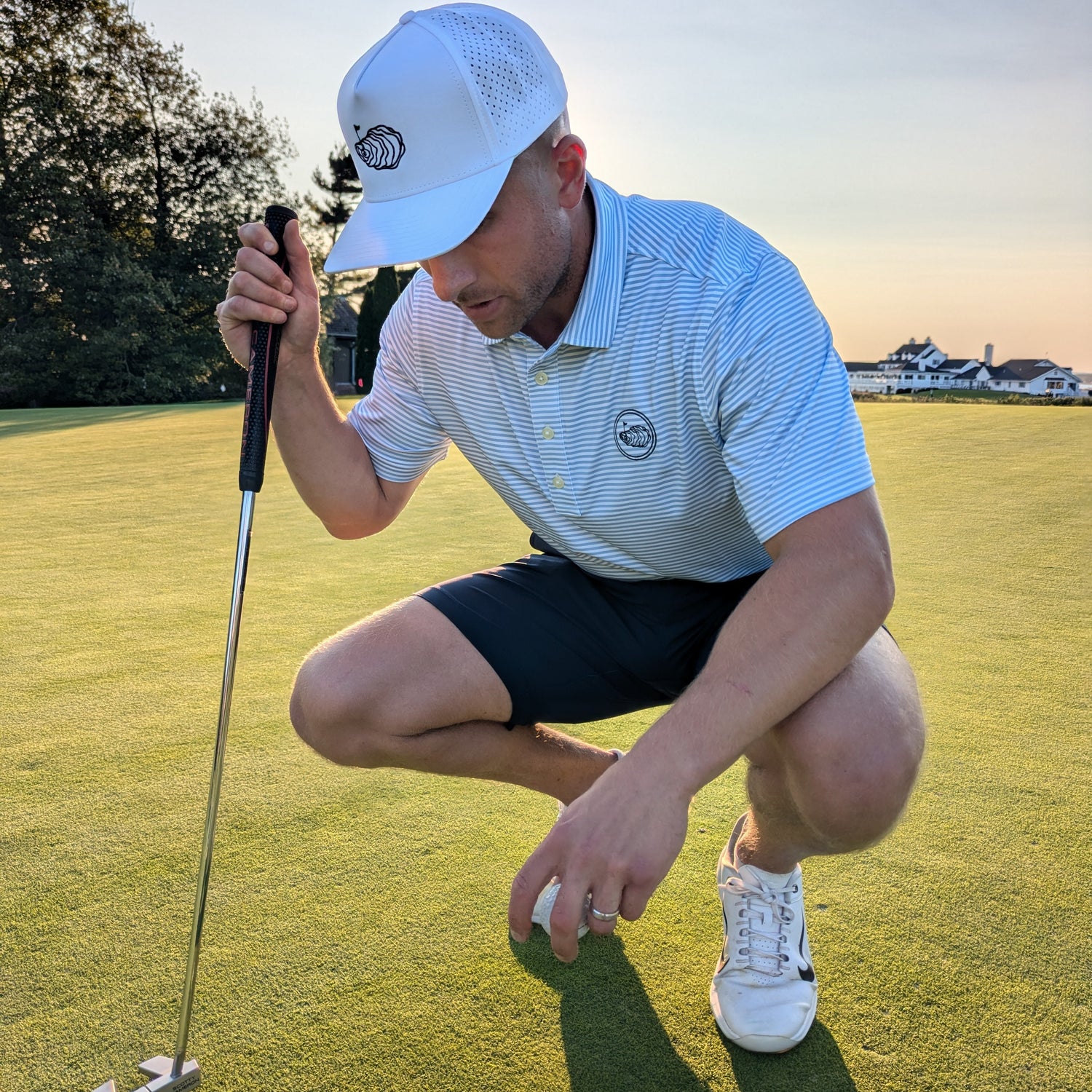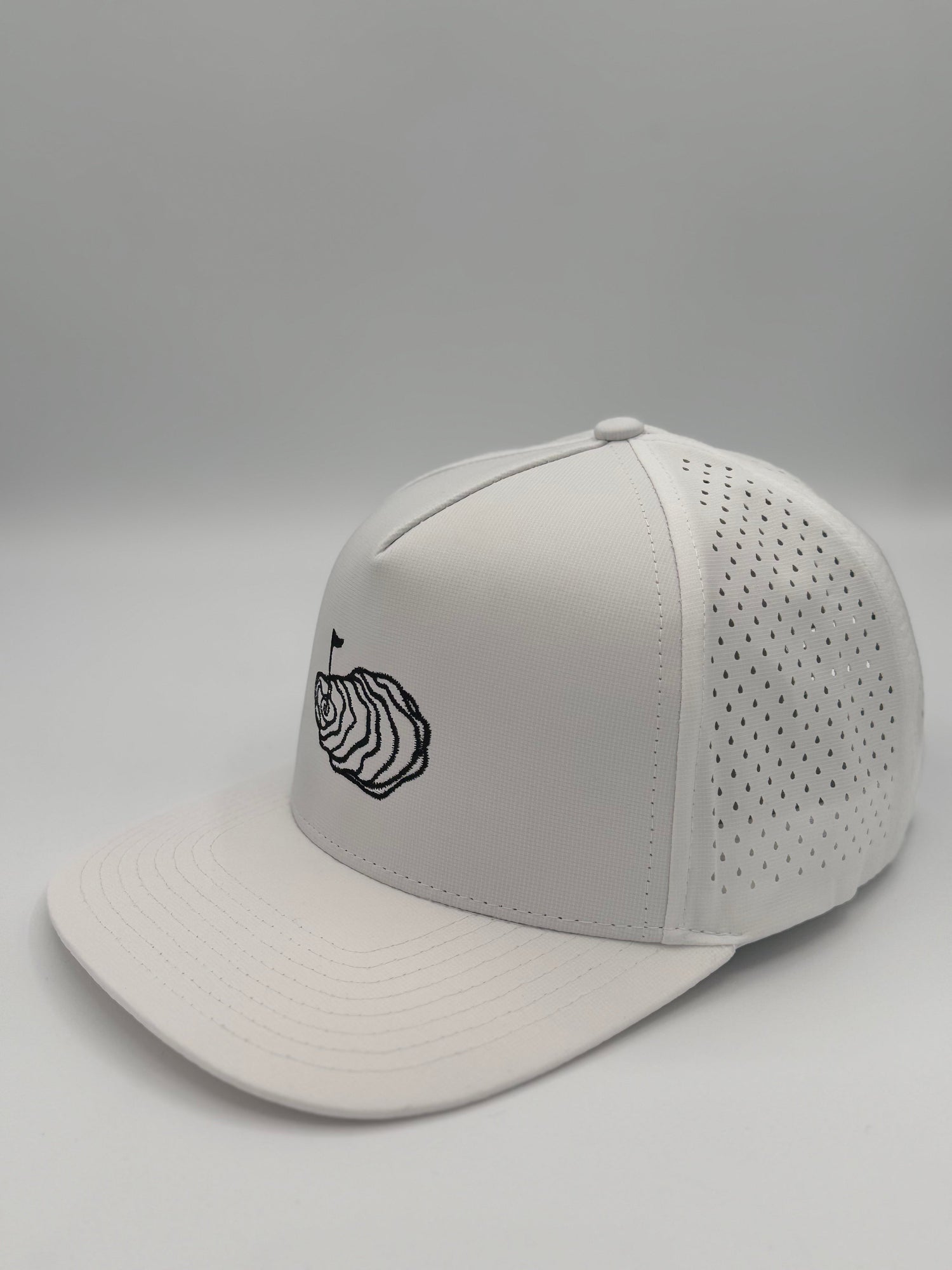 Introducing the great white! Made with premium materials, this hat features a flat embroidered logo for on or off the course fashion. Take a bite into great style today.