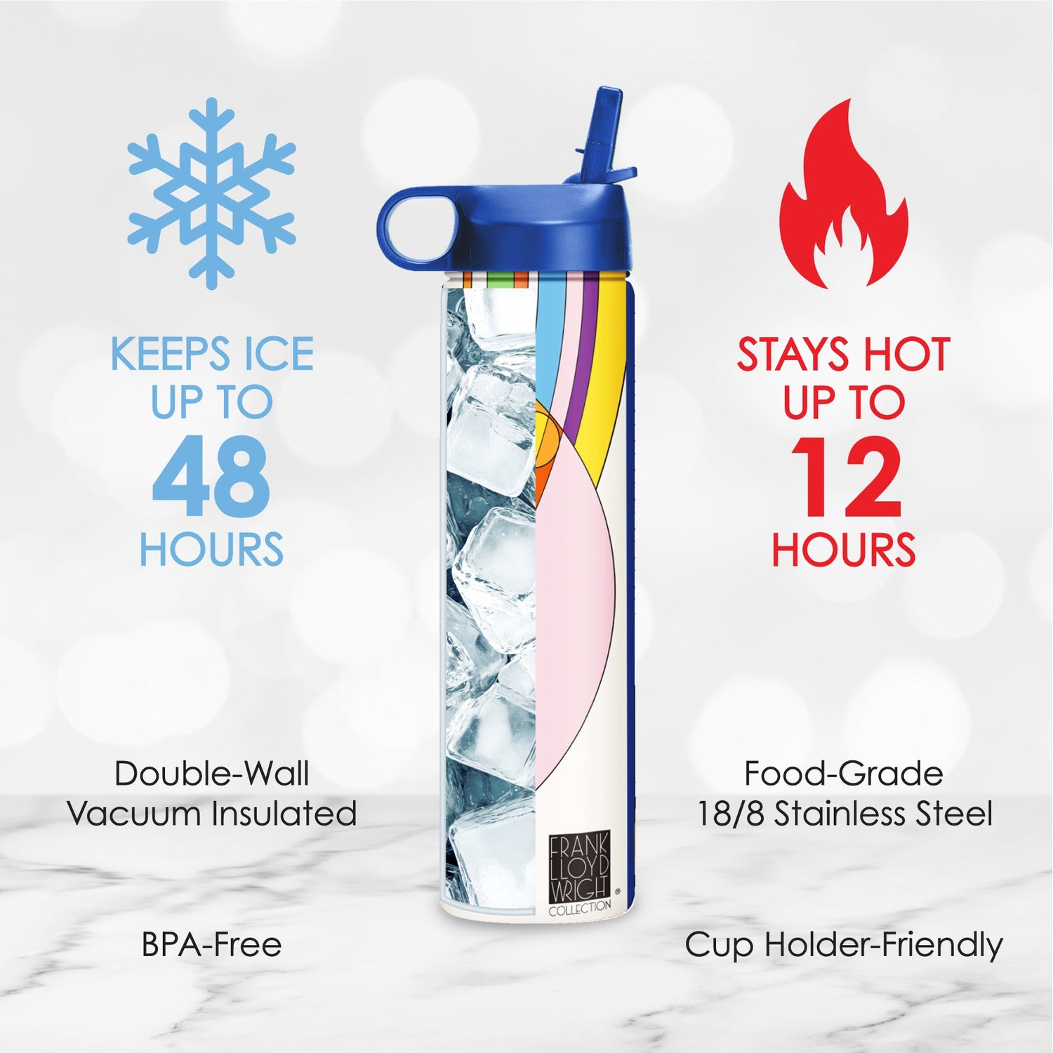 - BPA-free 18/8 stainless steel, double-wall vacuum insulated to keep hot beverages hot up to12 hours; cold drinks up to 30 hours, keeps ice frozen for up to 2 days