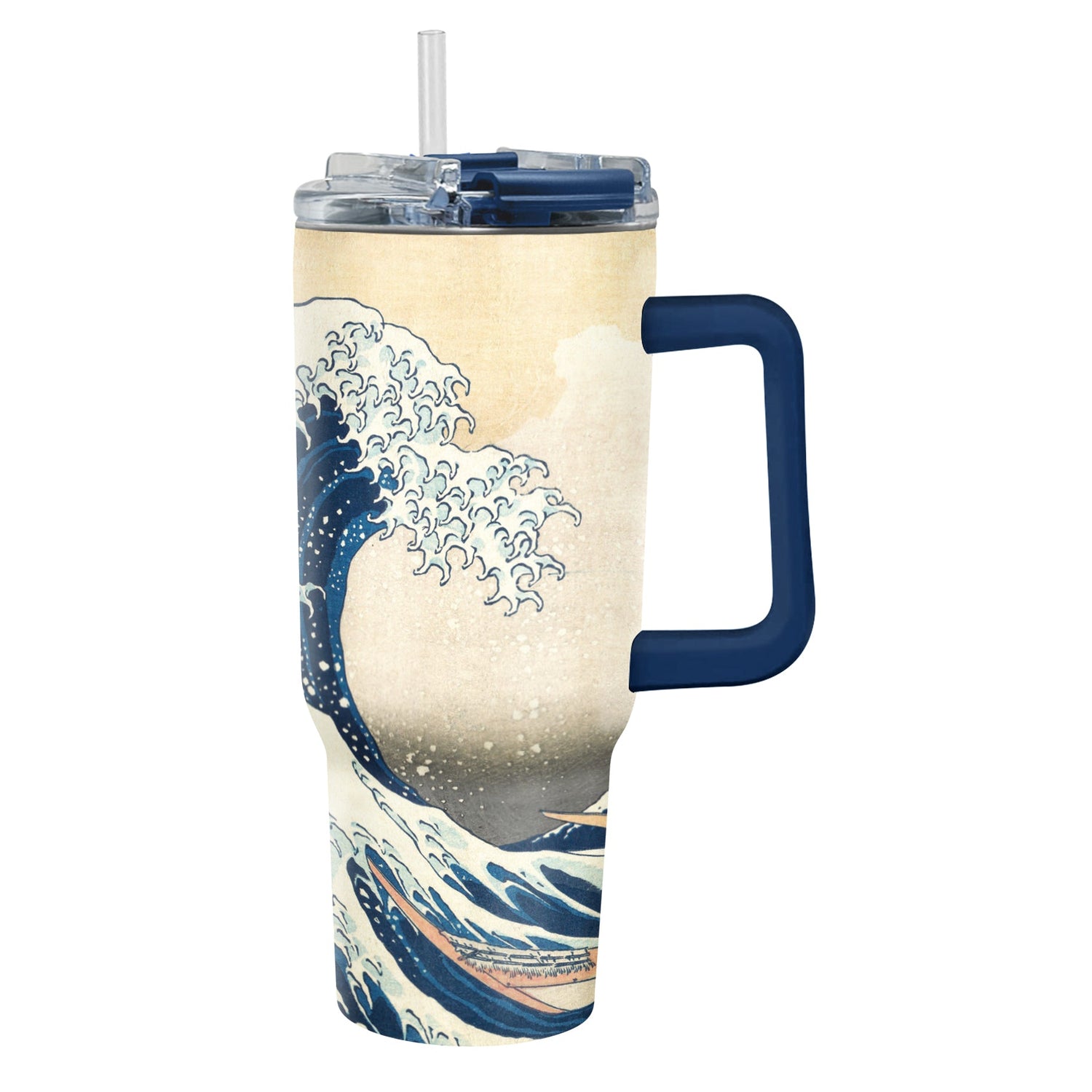 Stay Refreshed On-The-Go with Our 30oz Stainless Steel Tumbler!Discover the perfect blend of style and practicality with our Stainless Steel Tumbler. The sleek, modern design of this Tumbler makes it a fashionable accessory for any occasion. Whether you're hitting the gym, the office, school, or the trails, it's the perfect choice. This double-wall vacuum insulated Tumbler keeps beverages hot for 12 hours and cold for 36, ice up to 3 days ensuring you're always refreshed. Crafted from durable, BPA-free 18/8 stainless steel, it's a sustainable and eco-friendly choice. The leak-proof design guarantees a mess-free experience, while the wide mouth simplifies cleaning. Elevate your hydration game, reduce waste, and enjoy hassle-free adventures with this travel-friendly companion.Our product features exquisite designs inspired by the timeless artistry of Katsushika Hokusai. Hokusai's art is renowned for its exquisite woodblock prints, depicting scenes of nature, landscapes, and everyday life in Japan. His iconic work "The Great Wave off Kanagawa" exemplifies his mastery of composition and dynamic brushwork. Hokusai's prints are admired for their intricate detail, evocative imagery, and enduring influence on Japanese and Western art alike.Stunning rendering of Katsushika Hokusai famous art, "The Great Wave." The design is captured with an artist's eye for detail, light & color.