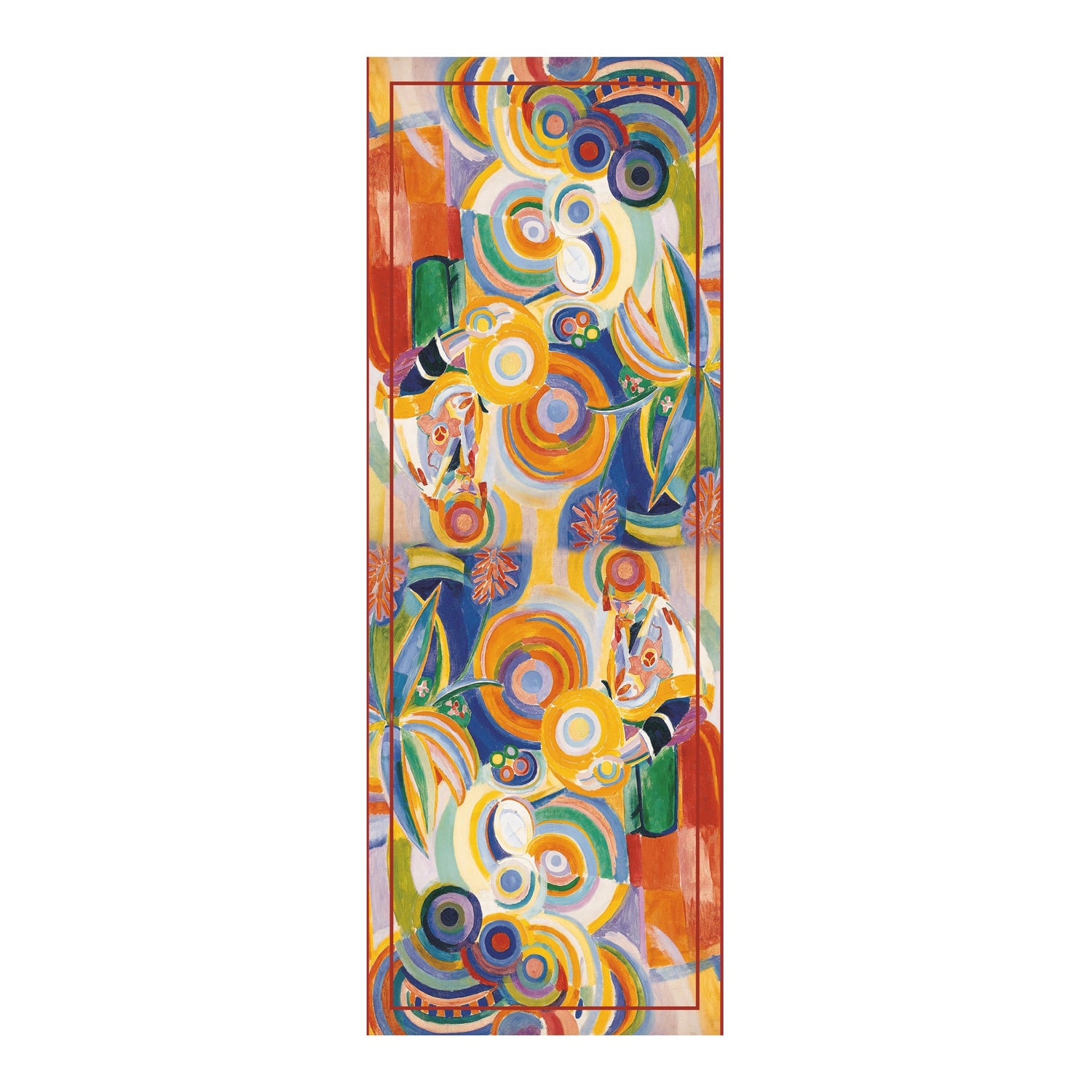 The elegant design features "Portuguese Woman," painted in 1914 by Robert Delaunay and now in the permanent collection of the Museo Thyssen-Bornemisza in Madrid. The artist created this boldly abstract piece by mixing paint with hot wax to achieve the most intense color saturation possible.