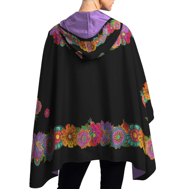Laurel Burch Blooms Reversible Rain Cape Poncho – Lightweight Hooded Womens Wrap