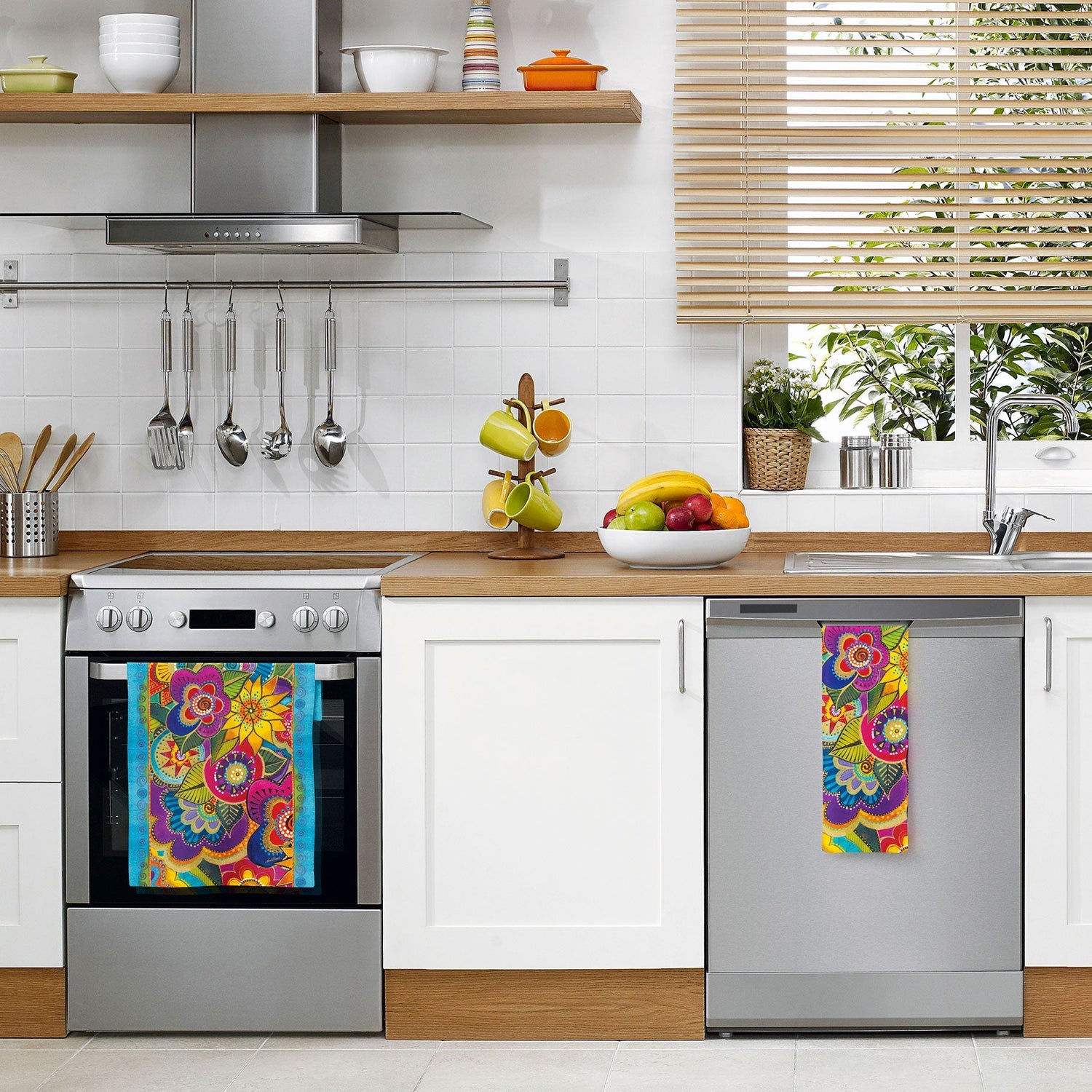 Laurel Burch Carlotta's Garden Cotton Tea Towel – Flat Weave, Absorbent