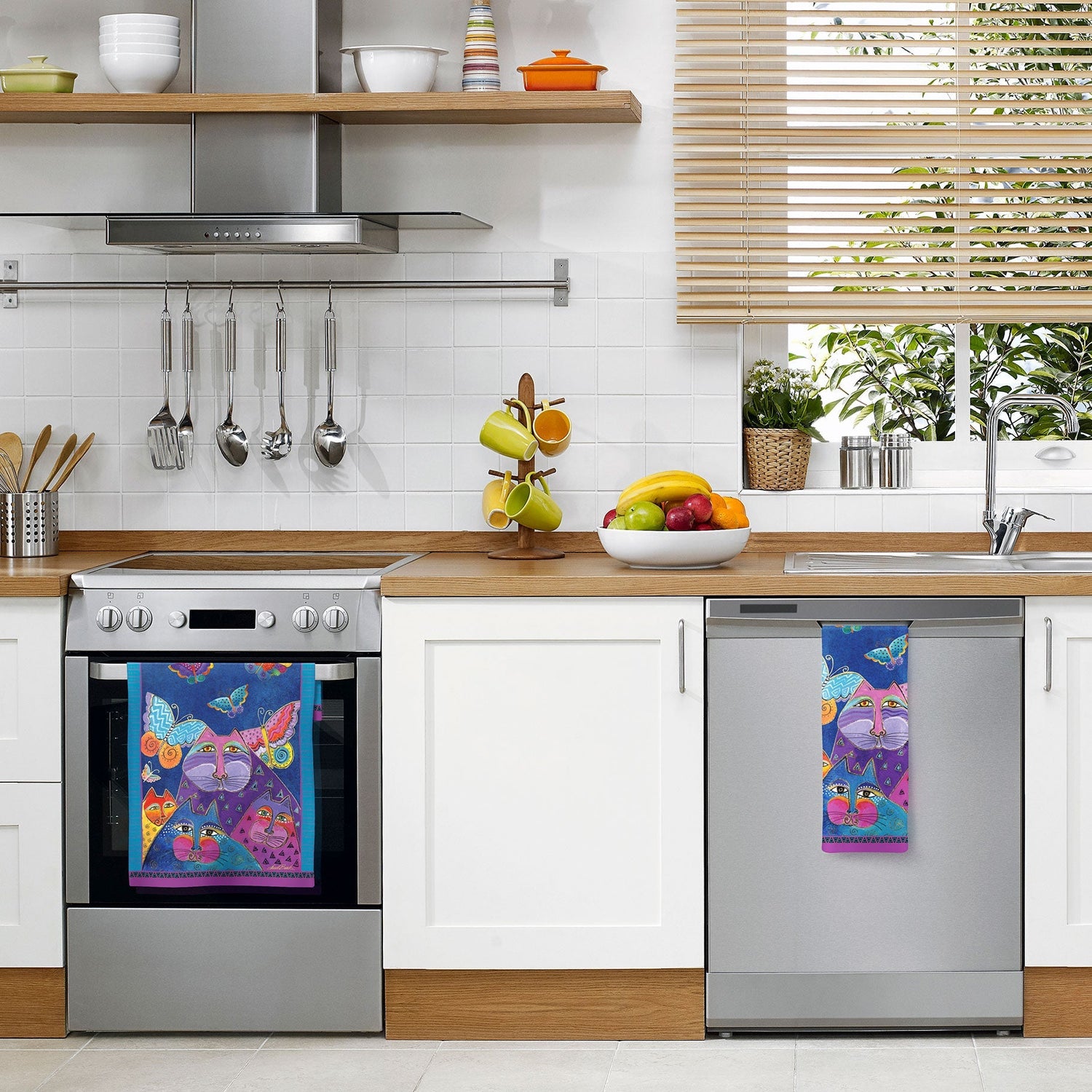 These artfully designed tea towels are ideal for drying dishes, picking up hot plates, and adding a decorative touch to your kitchen. All of the Accent by RainCaper Tea Towels have a convenient hanging loop for easy storage, and the vivid colors of the design will not fade with machine washing. The perfect gift for the art lover or master chef in your life!