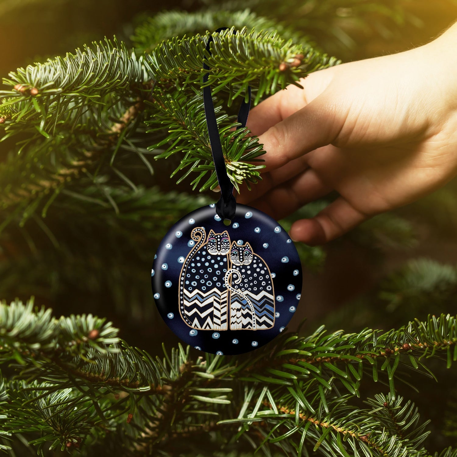 Laurel Burch Polka Dot Gatos Porcelain Keepsake Ornament – Flat Ceramic, Gift-Ready
