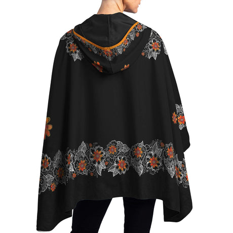 Laurel Burch Orange Blossoms Reversible Rain Cape Poncho – Lightweight Hooded Womens Wrap