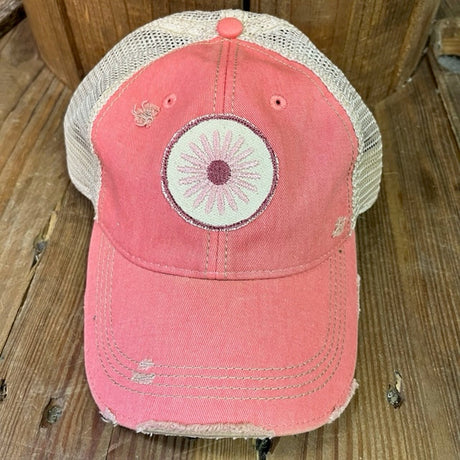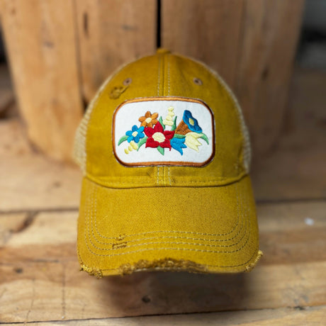 CHERRIES Distressed Tan Mesh Snapback Baseball Cap