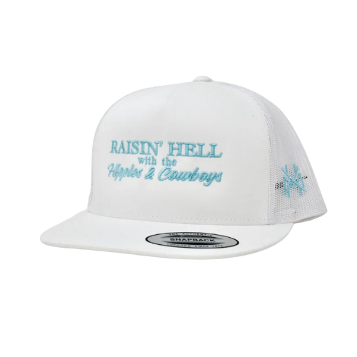 Raising Hell with the Hippies and Cowboys - Flat Bill White is backordered and will ship as soon as it is back in stock.