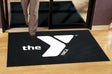 Low-profile, functional indoor/outdoor mat with durable fabric produced with 80% post-consumer, recycled plastic bottles. It is easy to clean- simply vacuum or hose off! It boasts a high-definition print process with 56 standard color options to choose from. The mat should last 3-5 years! Complies with Prop 65. 2' W x 3' L x 5/16" Thick