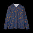 Enhance your golfing attire with our topographic print golf hoodie! Perfect for brisk mornings on the green or relaxed evenings at the clubhouse, this hoodie combines functionality with a striking design. The navy blue base with vibrant orange contour lines is reminiscent of a well-manicured golf course's undulating terrain, making it a standout piece for any golf enthusiast.