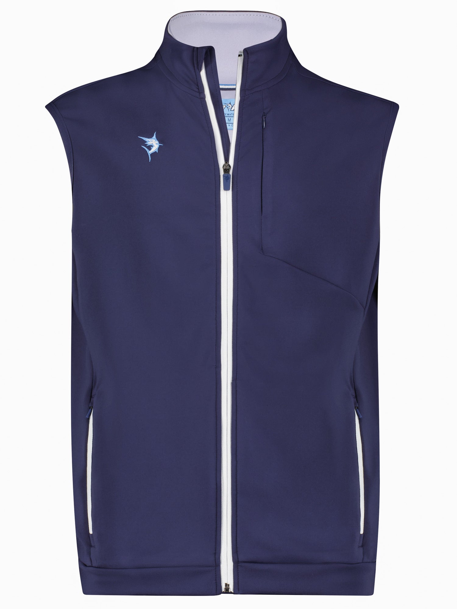 Technical midweight performance fabrication. This fabric is soft on the inside and smooth on the outside. The four-way stretch adds to the comfort and versatility. Details feature hidden chest pocket, hand pockets, contrast zippers, embroidered left chest logo and silicone icon logo on back neck.
