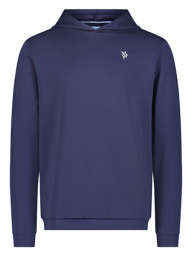 Technical midweight performance fabrication. This fabric is soft on the inside and smooth on the outside. The four-way stretch adds to the comfort and versatility. Details feature embroidered left chest logo.