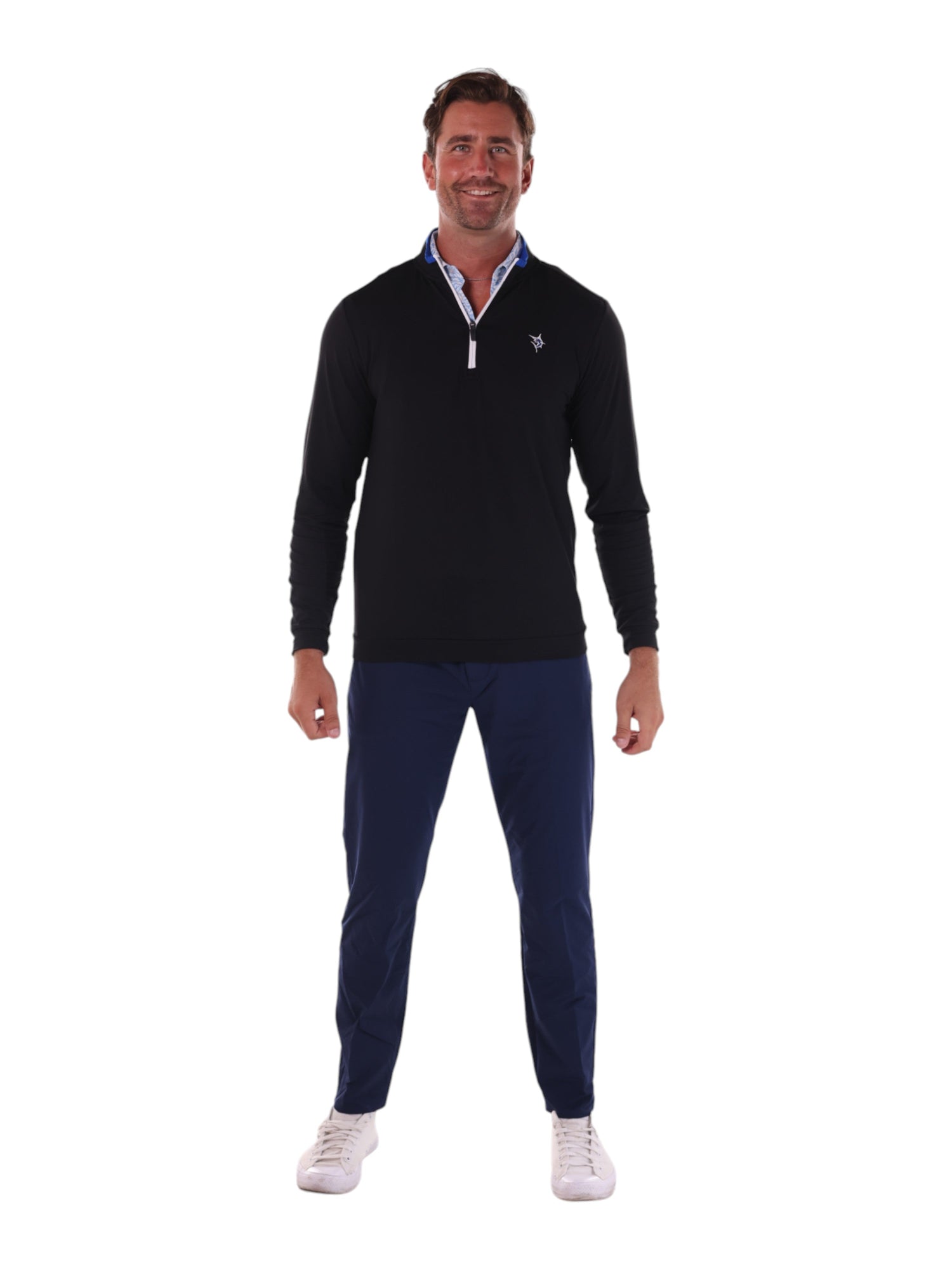Performance quarter zip featuring lightweight soft poly spandex wicking fabric. Sun Protection, UV50 and patented silicone sleeve grip which holds your sleeves in place. Perfect for spring and summer with lightweight performance fabric that has smooth hand feel.  A great layering piece under a vest or jacket for cooler days.