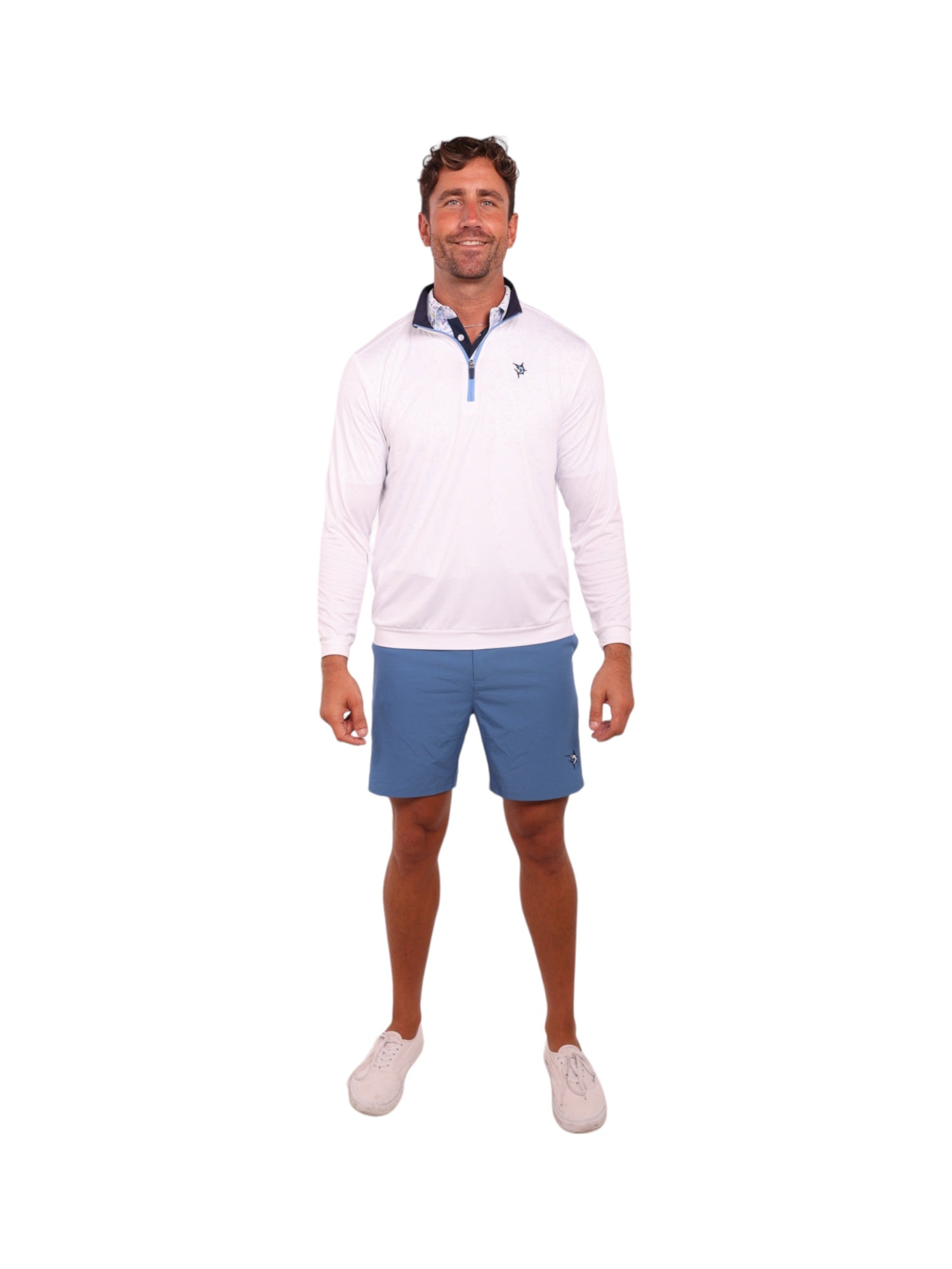 Performance quarter zip featuring lightweight soft poly spandex wicking fabric. Sun Protection, UV50 and patented silicone sleeve grip which holds your sleeves in place. Perfect for spring and summer with lightweight performance fabric that has smooth hand feel. A great layering piece under a vest or jacket for cooler days.