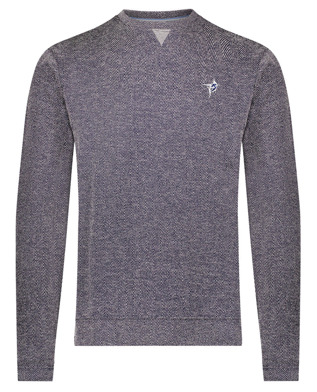 Just like its name and historic town on the waterfront of North Shore of Long Island, The Oyster Bay is a Classic Herringbone style in a traditional crew neck. Featuring soft cotton poly fabric with a little stretch for a classic fit. Stylish neck v-notch and embroidered logo on the left chest. We advise if this piece is to be worn as over a button down or heavier first layer to order one size larger.