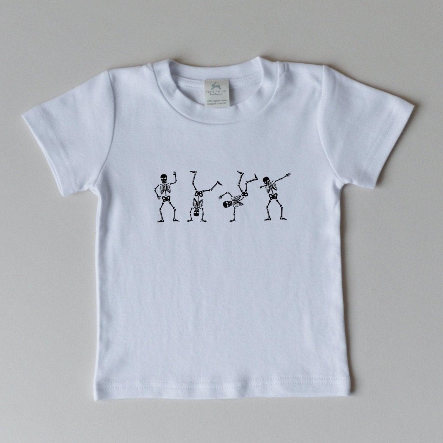 Elevate your Halloween fashion with our Dancing Skeleton Graphic T-Shirt. This tee fully embodies the Halloween spirit with its whimsical design, making it the ultimate selection for the spooky season. The graphic is skillfully screenprinted onto the fabric, ensuring a design that remains vibrant and durable over time. Crafted from high-quality 100% organic cotton, it's the perfect addition to your child's Halloween wardrobe. Create unforgettable Halloween memories with our Dancing Skeleton Tee. It's the ideal fusion of style and spooky fun, whether it's for trick-or-treating or Halloween-themed gatherings.