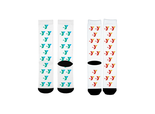 Enjoy the freedom of full-color imprinting on these mid-calf/crew-cut socks. Features: Polyester construction, one size fits most, comes in a pair, ultra soft, contrasting black toe and heel, over the calf fit. Machine wash in cold water. 3 ½" W x 20 ¼" H