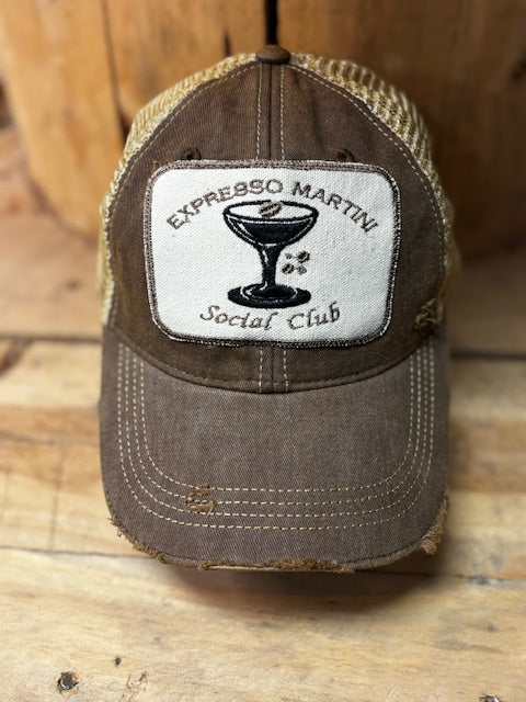 Espresso Martini distressed snapback mesh hat is backordered and will ship as soon as it is back in stock.