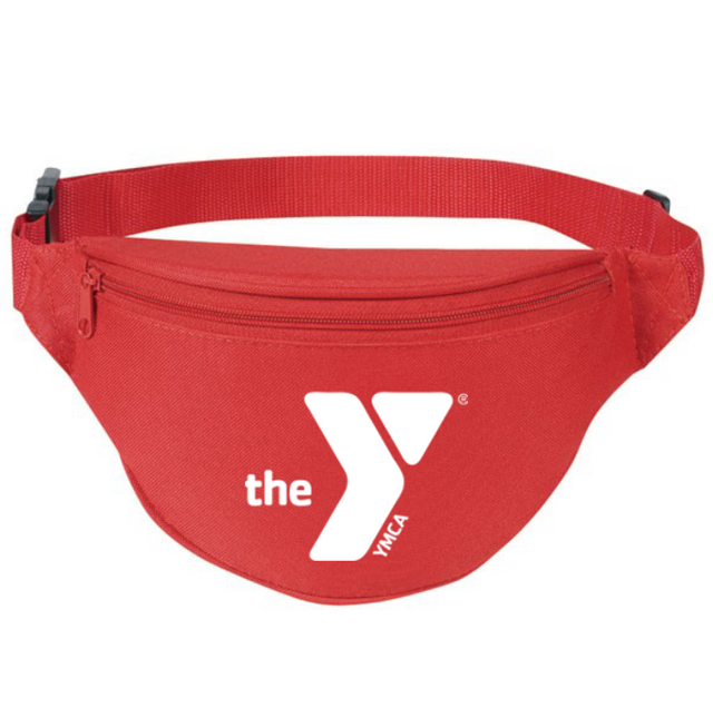 Fanny Pack made of Poly 600D. 2 zippered pockets: main compartment & back. Adjustable webbing waist strap with quick release buckle. Complies with Prop 65. 12" W x 6" H x 3" D