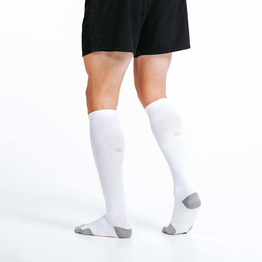 This knee-high Marathon sock offers true graduated compression, increases blood flow, and allows you to perform at your peak, recover faster and feel better sooner. Our advanced design supports critical muscles and tendons, and our proprietary blend of materials wicks moisture for a comfortable fit that goes the distance.
