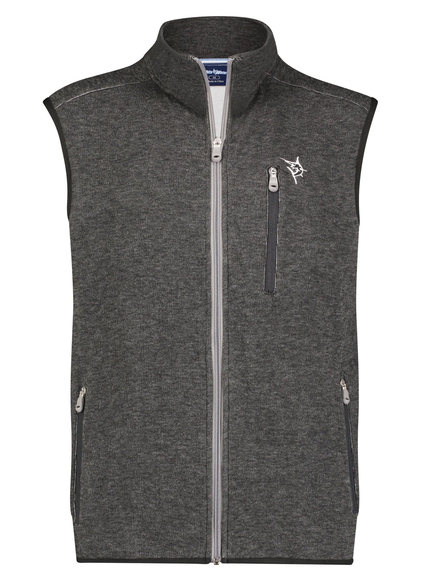 Our newest vest, the Riverside, is an ultra-soft lightweight fleece with a little stretch for comfort. Great spring and fall piece. Left chest pocket, tri-color middle zipper, contrast pocket zipper and soft rubber zipper pulls, with navy piping around arms and bottom hem. Left chest embroidered icon logo.