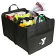 Made of 80GSM non-woven fabric. This expandable trunk organizer features two sections, outer side pocket and reinforced handles, and is collapsible for easy storage. Complies with CPSIA, Prop 65. 13" L x 17" W x 12" H