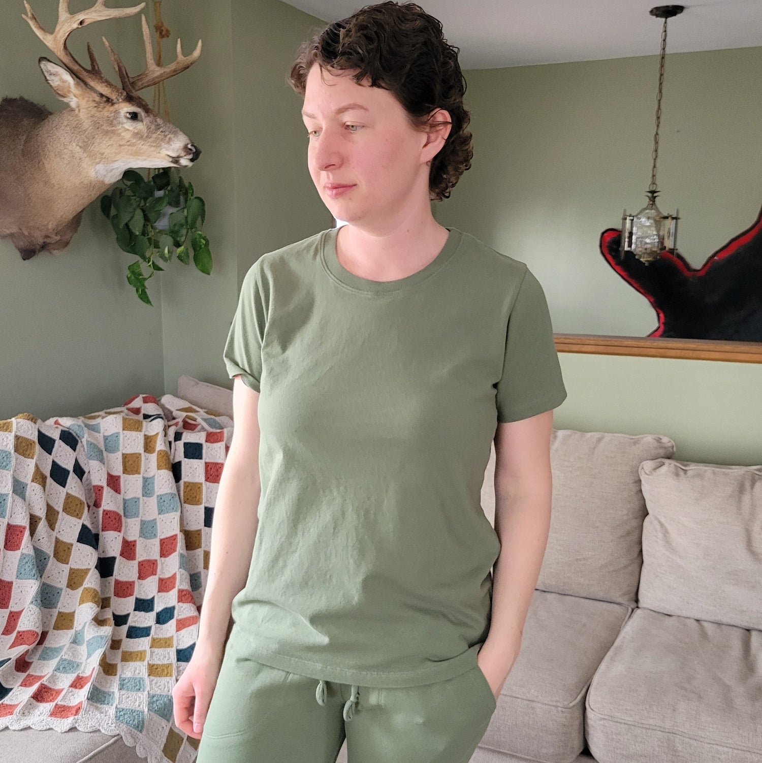 The Boxy Tee is a straight sided Tshirt, with a slightly oversized fit. Made with a medium weight, stretchy organic Jersey