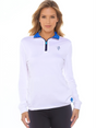 Women's performance quarter zip , featuring lightweight, soft, poly spandex wicking fabric. UV50 Sun Protection.